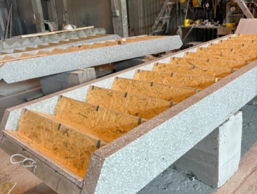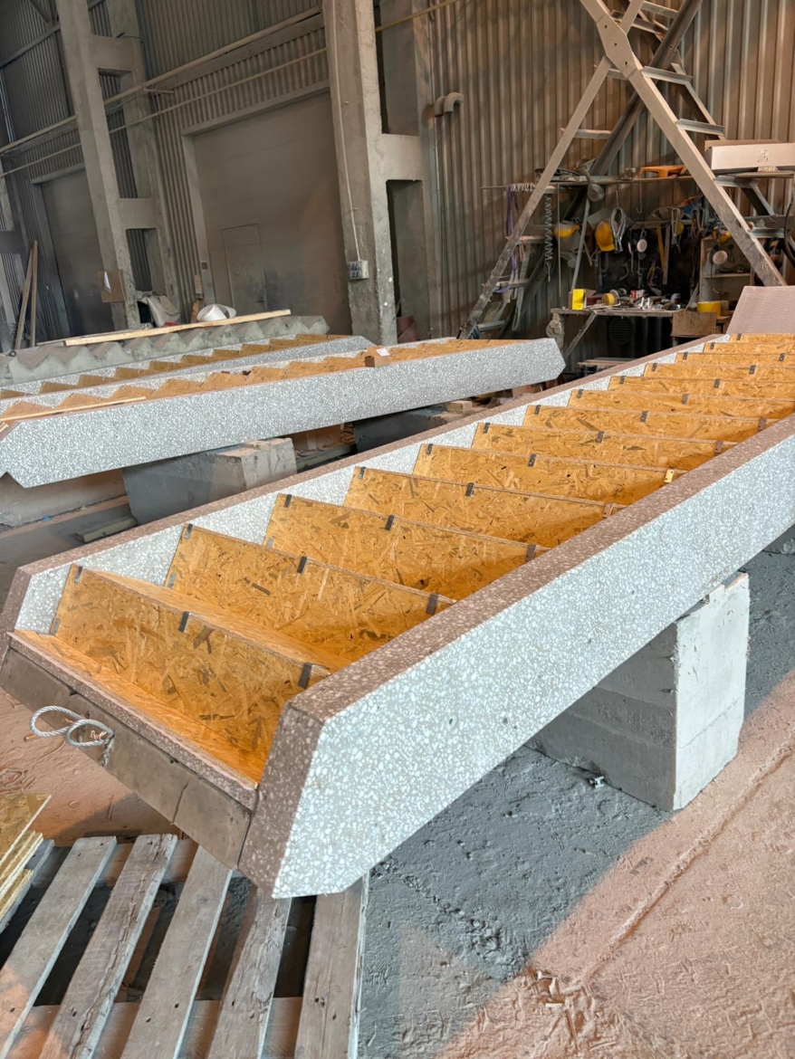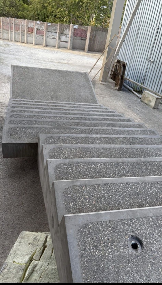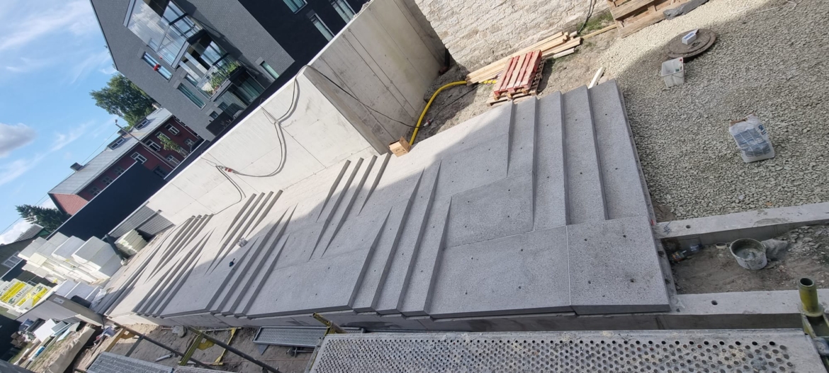 Sirged ja keerdtreppide marsid, mosaiikbetooni (Terrazzo) kattega, hammerdatud pinnaga või pesubetoon pinnaga
